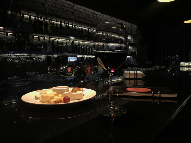 Зал представляет собой просторное помещение с уютным интерьером и интимной обстановкой, благодаря темным тонам и приглушенному свету. По всему периметру расставлены столики, всего их 37. Есть также вип-места и барная стойка, где тоже можно удобно разместиться и заказать любимый напиток из винной карты.